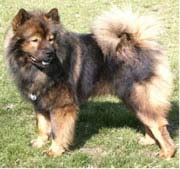 Rasse: Eurasier Herkunft: Deutschland Körperbau: Der Eurasier ist ein mittelgroßer, widerstandsfähiger Hund mit polarspitzartigem Körperbau. Seine Haarlänge läßt den Körperbau gut erkennen. Es gibt ihn in den Farben falben, rot, grau-gewolkt, schwarz und schwarz-markenfarben. Das kräftige Fell ist nicht pflegeintensiv. Es ist ein mittelgroßer, spitzartiger Hund mit Stehohren in verschiedenen Farbschlägen; mit einer Haarlänge, die die Proportionen des Körpers noch erkennen lässt. Die Rumpflänge beträgt etwas mehr als die Widerristhöhe (48-60 cm) bei einem Gewicht von 18-32 kg. Wesen: Selbstbewusst, ruhig, ausgeglichen mit hoher Reizschwelle, wach- und aufmerksam ohne lautfreudig zu sein; mit stark ausgeprägter Bindung an seine Familie; Fremden gegenüber zurückhaltend, ohne aggressiv zu sein; geringer Jagdtrieb. Zur vollen Ausbildung dieser Merkmale braucht der Eurasier ständigen, engen häuslichen Kontakt zu seiner Familie und eine verständnisvolle, jedoch konsequente Erziehung. Verwendung: Begleithund |
